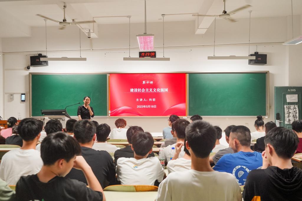 5月18日晚上,副校长向前以《建设社会主义文化强国》为题,为视觉传达2203、2204班级学生授课。向前从什么建设中国特色社会主义文化,为什么要坚持马克思主义在意识形态领域指导地位的根本制度,为什么要用社会主义核心价值观凝心聚力,如何提升国家文化软实力和中华文化影响力四个方面深入浅出阐释,从中国特色的服饰出圈实例引导同学们要坚持文化自信,用自己的专业建设社会主义文化强国。