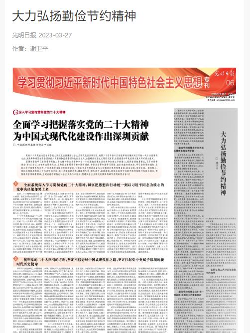 谢卫平教授署名的理论文章《大力弘扬勤俭节约精神》。