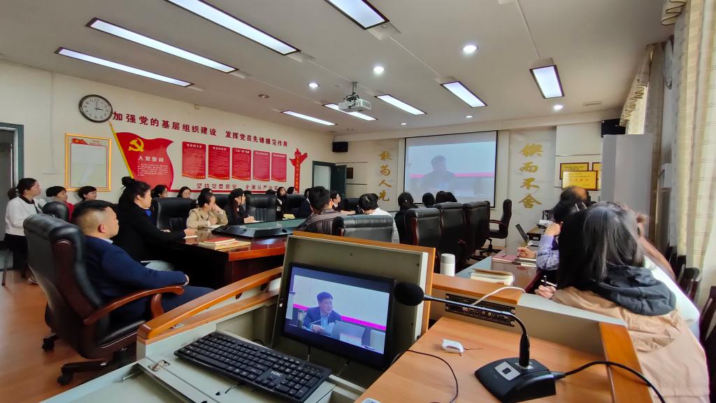 党总支部全体党员教师在E125会议室通过网络同步直播的方式,集中收看了联系校领导讲新学期第一堂党课。