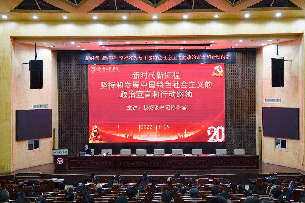 在一报告厅举办深入学习贯彻党的二十大精神宣讲会,校党委书记陈岳堂作《新时代新征程坚持和发展中国特色社会主义的政治宣言和行动纲领》专题辅导报告,进一步引领广大党员干部师生深入学习贯彻党的二十大精神,自觉把思想和行动统一到党的二十大精神上来,把智慧和力量凝聚到落实党的二十大确定的各项任务上来,深刻领会和准确把握大会提出的重要思想、重要观点、重大判断、重大举措,坚定捍卫“两个确立”、坚决做到“两个维护”。全体在家校领导、中层干部、思政课教师,计算机与通信学院党员教师,辅导员代表等到场聆听。