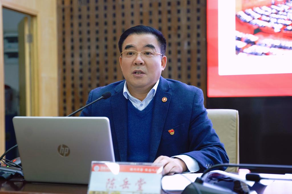 陈岳堂在介绍党的二十大报告基本框架的基础上,重点从“党的二十大报告的大会主题和根本要求”“总结新时代以来特别是党的十九大以来的变革与成就”“党的二十大报告的要点”等三方面,对党的二十大精神进行了系统深入宣传解读。同时他还要求广大干部和教师用党的科学理论武装青年,用党的初心使命感召青年,做青年朋友的知心人、青年工作的热心人、青年群众的引路人。