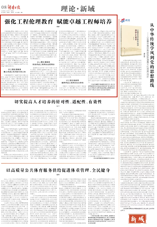党委书记黄昕在《湖南日报》理论版发表题为“强化工程伦理教育 赋能卓越工程师培养”的文章,深入阐述了工程伦理教育在卓越工程师培养中的重要性及其具体实践路径,这是age动漫