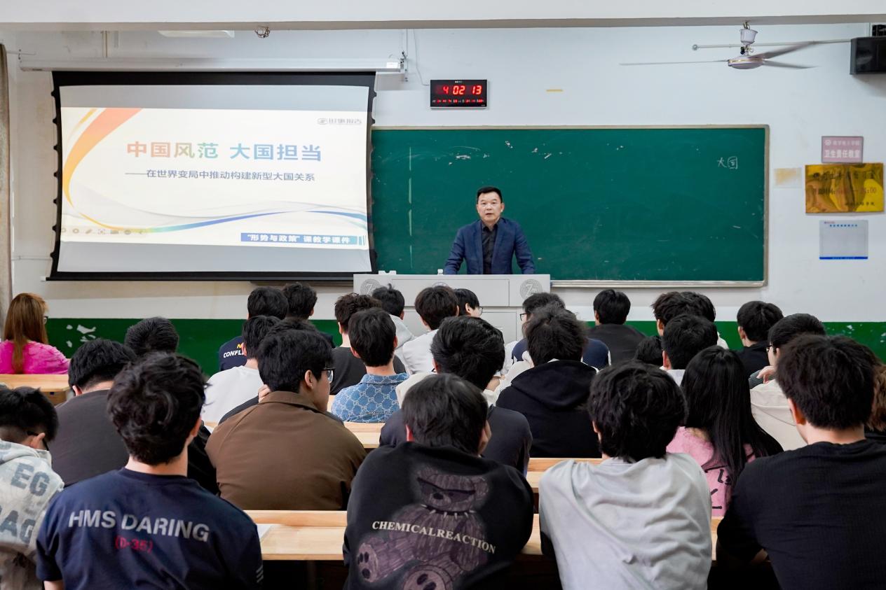 4月17日下午,校党委书记曹执令以“中国风范大国担当——在世界变局中推动构建新型大国关系”为主题,在4教学楼为工程管理24级本科生讲授了一堂视野宏阔、思想深刻的思政课。