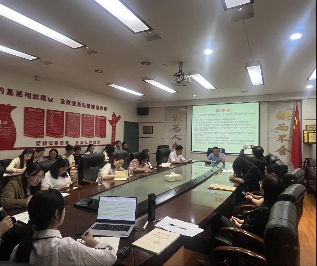 “清廉湖工”夏季学习主题活动实施方案相关内容,与会人员围绕党纪学习教育、师德师风建设、廉洁自律等主题进行了研讨交流。