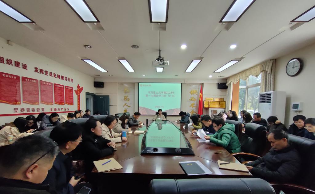 党总支部理论学习中心组在E125会议室开展2024年第一次理论学习(扩大)。学院党总支部书记谢卫平主持学习,党总支理论学习中心组成员和全体教职工参加学习。