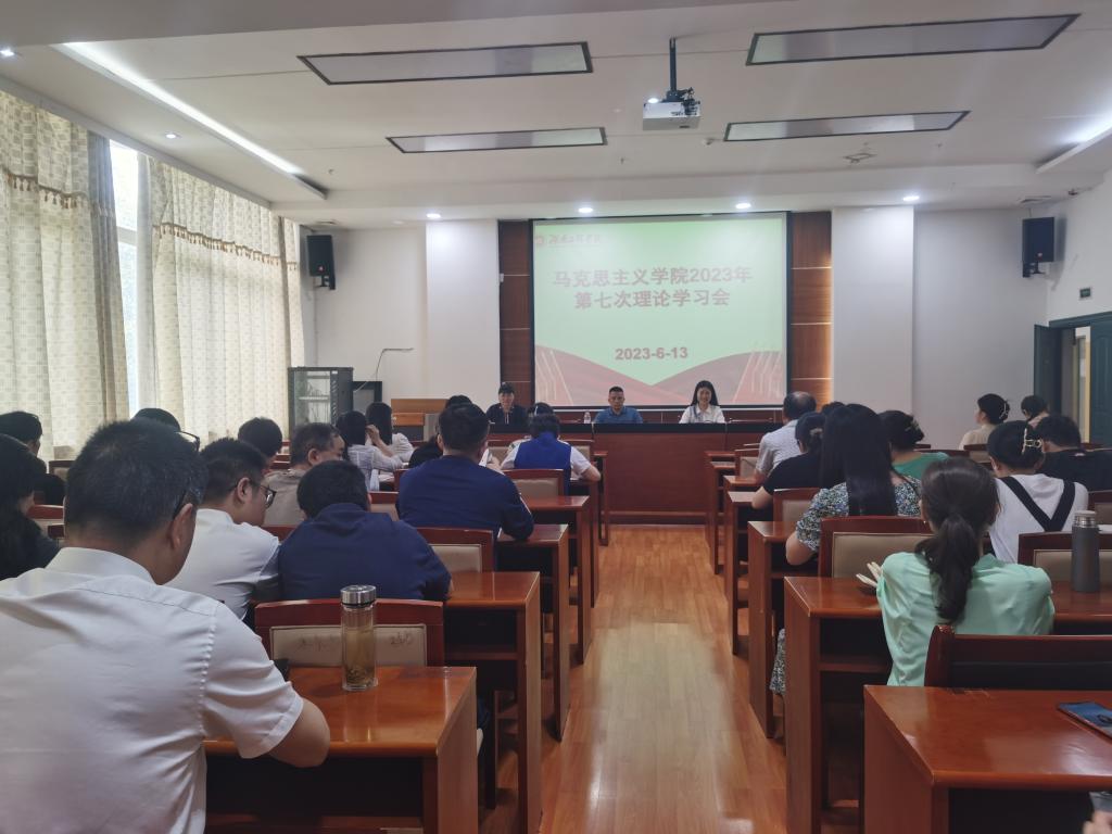 党总支部理论学习中心组在图书馆122会议室开展2023年第七次理论学习(扩大),学院党总支部书记谢卫平主持学习,党总支部理论学习中心组成员和全体教职工参加学习。