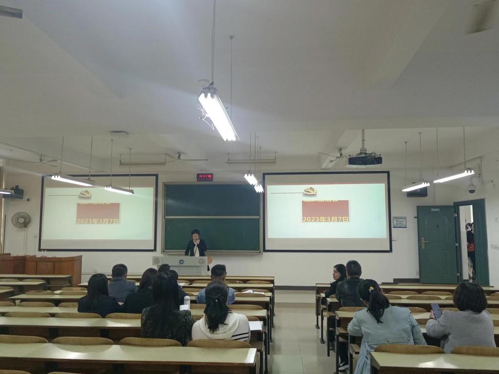 教工第二党支部在D301召开2022年度“双述双评”工作会议,支部全体党员参加会议。