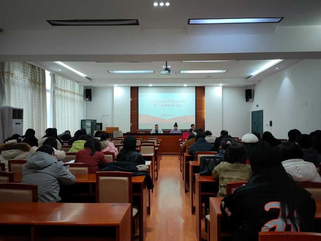 在图书馆122会议室开展2023年度第一次理论学习,学习会由党总支书记谢卫平主持,全院教职工参加学习。