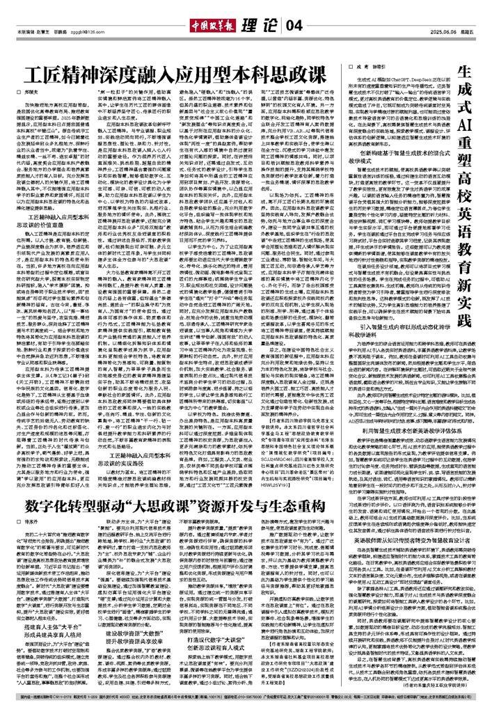 教师、湖南省高校意识形态安全研究基地研究员许苏丹老师的理论文章《数字化转型驱动“大思政课”资源开发与生态重构》在《中国改革报》正式刊发。文章深入探讨了在教育数字化战略背景下,“大思政课”建设的创新路径与深远意义,引发广泛关注。