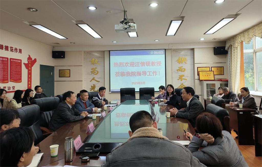 汪信砚仔细听取了科研情况汇报,对学院近年来取得的学科建设成绩表示肯定,并提出建议:一是加大对高层次人才的引进力度,持续加强科研平台的建设,锻造高水平科研队伍;二是将师资团队和青年人才建设与学术骨干力量培养紧密结合起来,激发科研动力,形成科研工作人人可为、人人能为、人人当为的态势;三是进一步凝练学科特色及方向,实现标志性成果的突破。