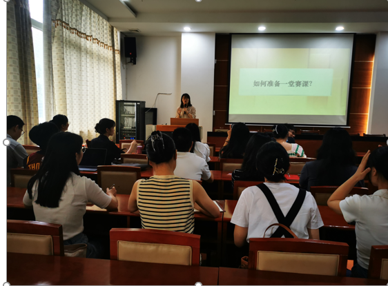 李孟雨老师以“如何准备一堂赛课?”为主题,从主题设计、教学设计两条主线阐述了一堂赛课的准备思路。从标题、导入、知识点讲解、结尾总结四个方面,分析了如何通过构建主题设计来表达观点;从PPT、板书设计、时间把控三个方面,分析了如何通过构建教学设计来充分表达观点。李孟雨老师经验分享生动形象,全体青年教师深受启发。