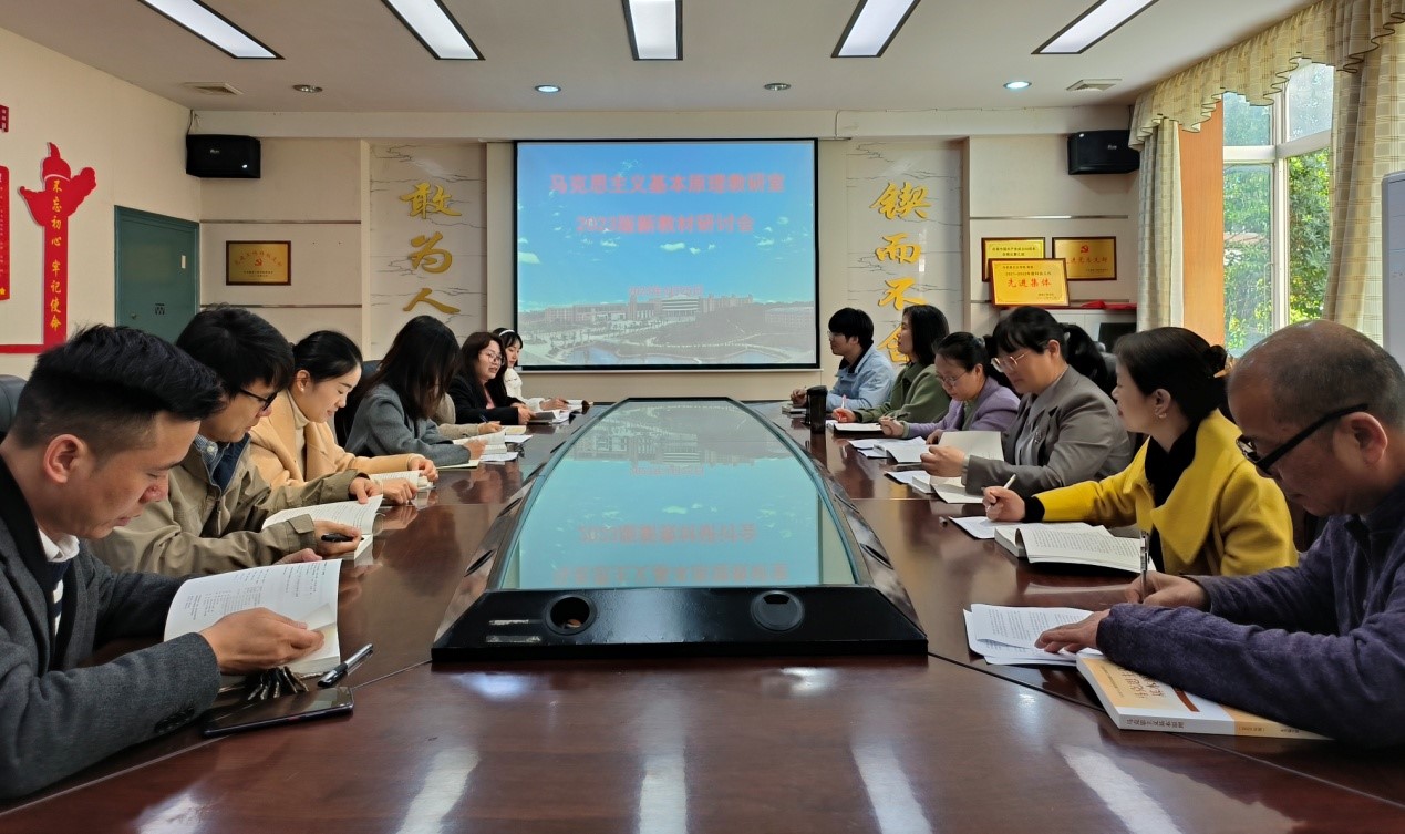 教研室主任陈灿主持介绍新教材变动内容,教研室老师们针对更新要点,着重探讨了调整背后的原因、过程、线索和目的,并结合实际教学需要,各自阐述了相关见解。大家对新版教材凸显出的马克思主义“中国化时代化”特色深有体会,纷纷表示《马克思主义基本原理》的教学要同中国具体实际相结合、同中华优秀传统文化相结合,体现党的二十大报告精神,增强青年大学生的“四个自信”。
