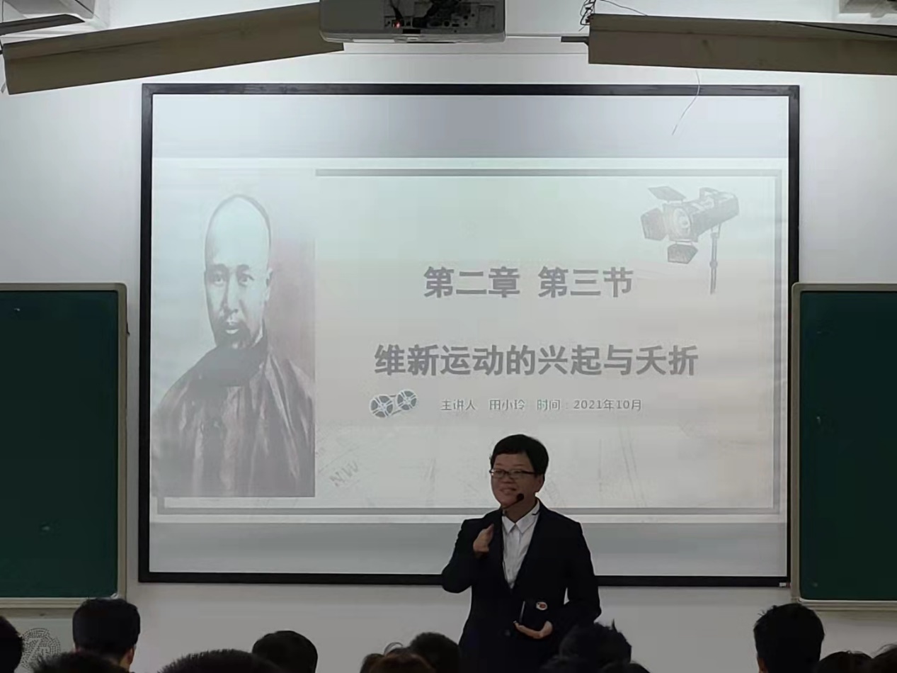 田小玲的授课内容为戊戌维新运动发生的背景、过程、失败原因及意义,她从甲午中日战争战败之后,国人酣睡之声渐醒导入,启发学生思考,提出“在国如累卵之势的情况下如果你是康有为,应该如何变法”?在总结学生回答的基础上,田小玲老师讲解了从制度到器物再到思想的改良措施有何弊端,重点分析了维新变法运动失败的原因。通过分析,使学生认识到民族资产阶级自身的局限性是导致这次运动失败的根本原因,在面对当时国家蒙辱、人民蒙难、文明蒙尘的情况,只有代表无产阶级利益的中国共产党才能带领全国人民,肩负起救亡图存的重任。