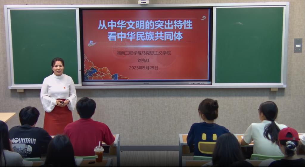 在 A502 教室举办了《从中华文明的突出特性看中华民族共同体》专题思政课。此次课程由刘亮红教授主讲,线上线下共计 20 多个班级的 600 余名师生共同参与。