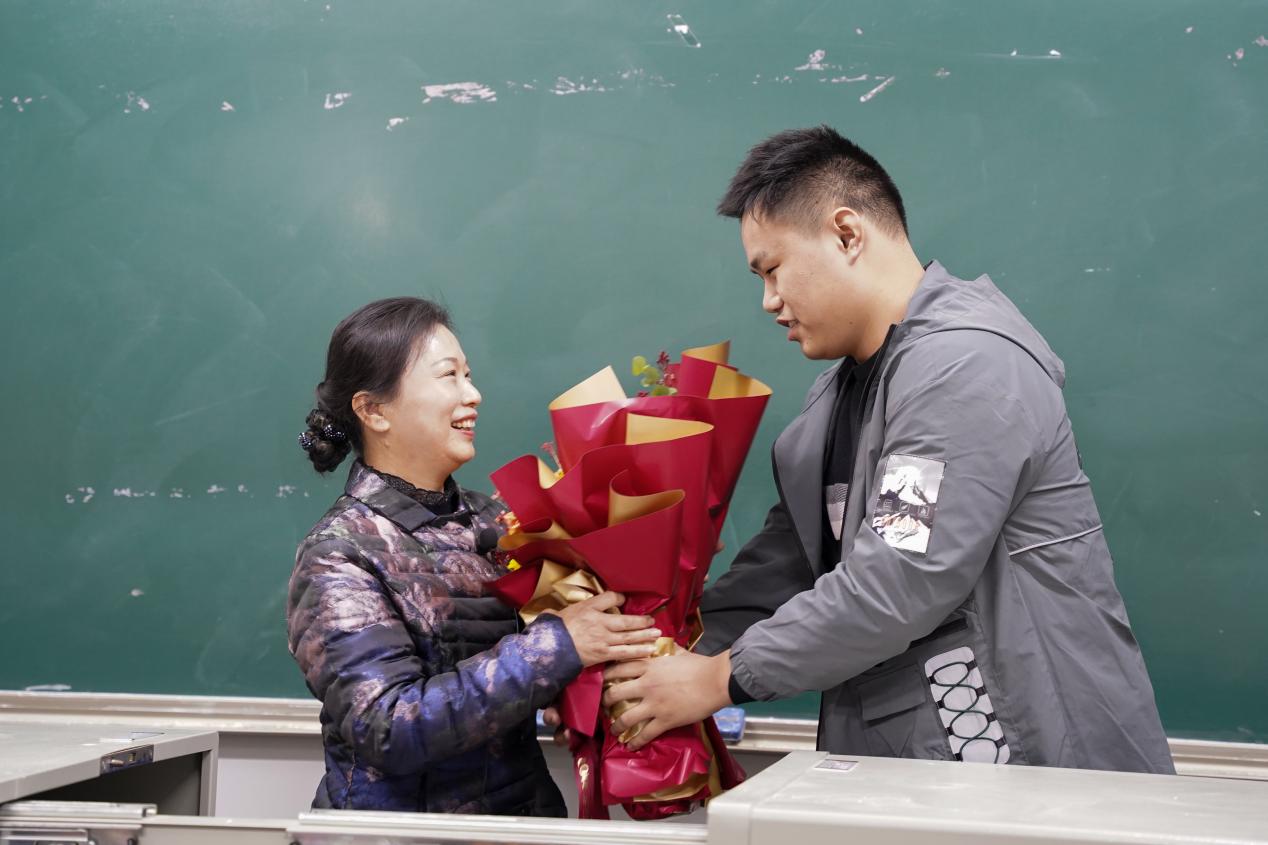 第四教学楼309教室迎来了一堂充满了温暖与爱的思政课。“同学们,今天是我从教39年的最后一堂思政课。很多人曾问我,什么是永葆青春的秘诀?我想,今天,我有了答案。”“在座的你们,就是我最好的青春保鲜剂!”