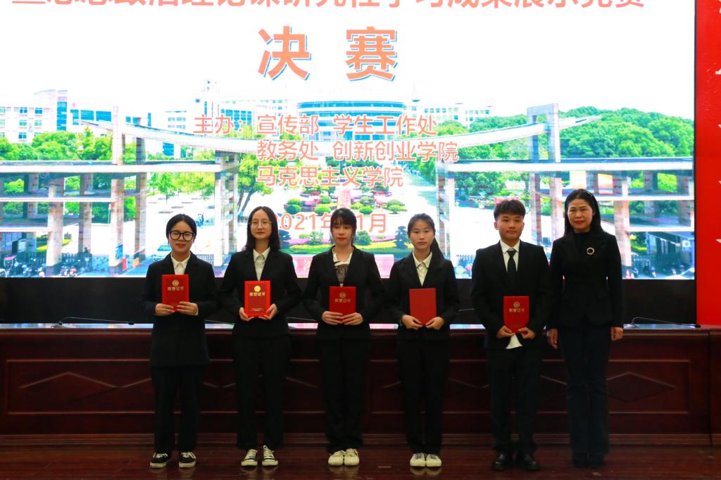 在一报告厅举办学习贯彻习近平新时代中国特色社会主义思想暨第七届大学生思想政治理论课研究性学习成果展示竞赛决赛。比赛产生特等奖一项、一等奖三项、二等奖六项。